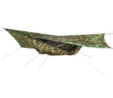 De Hennessy Hammock Jungle Expedition ZIP Woodland is ontworpen voor buitensporters die onder zware omstandigheden willen kunnen vertrouwen op hun uitrusting. Het Woodland-camouflageontwerp helpt je opgaan in bosrijke omgevingen en vermindert zichtbaarheid tijdens expedities in de natuur. Deze uitvoering wordt geleverd met een extra ruime Hex Rainfly, die optimale beschutting biedt bij hevige regen en wind, en met extra lange Tree Hugger banden van 182 centimeter voor een flexibele en boomvriendelijke ophanging.